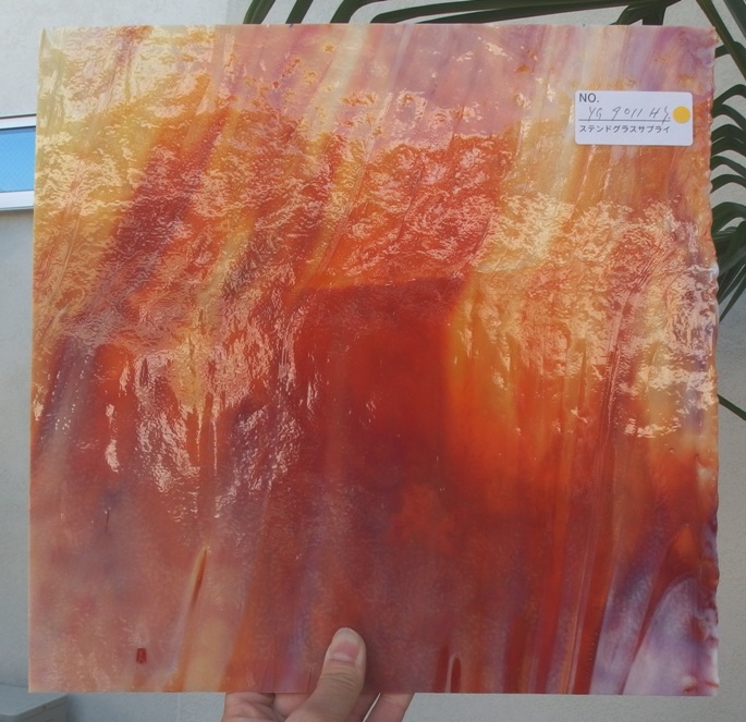 弊社手持ち在庫の中の1枚を撮りました。お手元に届くガラスとは色の出方など違う可能性がございます。