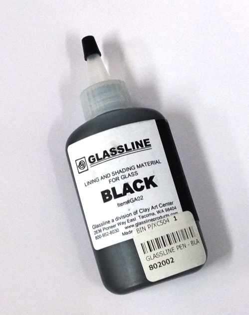 *約100g(ボトル込)アメリカ製 Glassline Paints Glassline Paints are used as a lining and shading material for glass. They are simple in design, easy to use and can be thinned with water. Glassline colours may also be sprayed or airbrushed to achieve subtle variations on glass. The Glassline colours can be applied between multiple layers of glass or on the top surface for a complex dimensional look. Glassline Pen colours are compatible with most types of glass from float glass to 90 COE (Bullseye and Wasser Glass) and System 96 (COE). For best effect, "tack fuse" individual sheets of glass before stacking your full fuse. Glassline colours are best fired at around 815ºC, but may be fired lower or higher depending upon the desired results. Glassline products are lead-free and food safe when fired.
