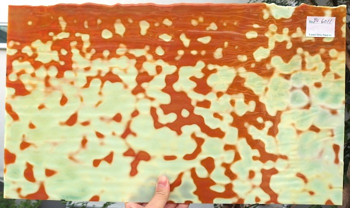 弊社手持ち在庫の中の1枚を撮りました。お手元に届くガラスとは色の出方など違う可能性もございます。