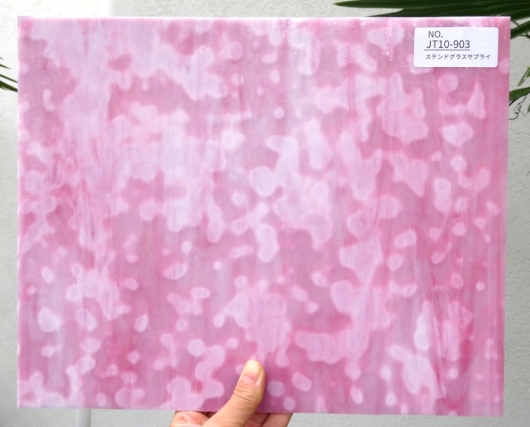 弊社手持ち在庫の中の1枚を撮りました。お手元に届くガラスとは色の出方など違う可能性がございます。